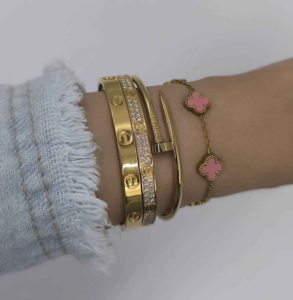 مجموعة اساور ماركات مطلية وعليها ختم البراند ضمان سنتين عاللون