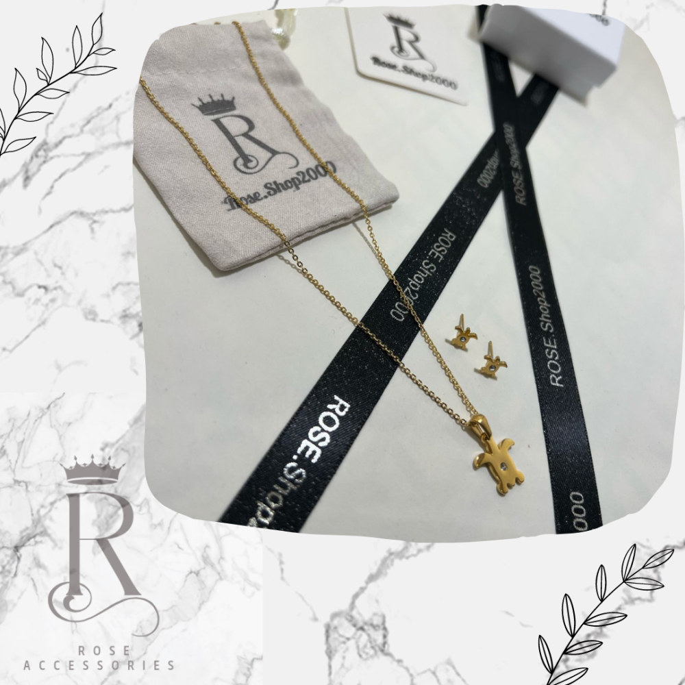 طقم مكون من سلسال وحلق مناسب للاطفال من عمر سنة إلى ١٣ سنة